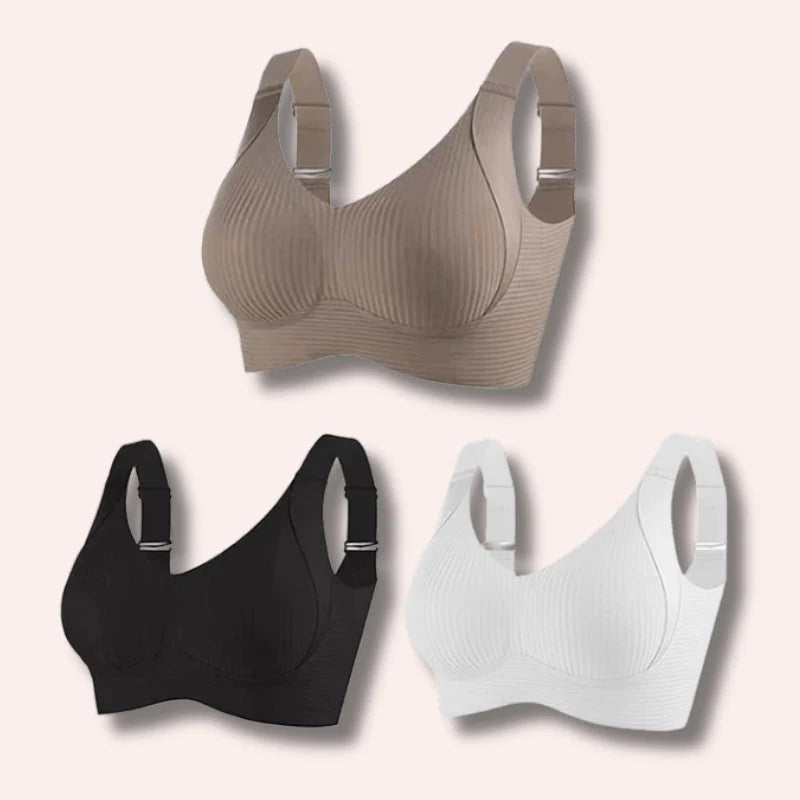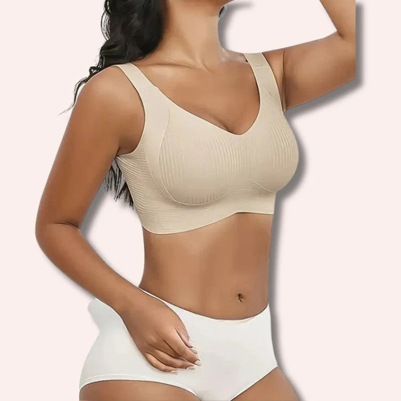 Este sujetador sin aros combina comodidad y suavidad en cada uso. Gracias a su diseño wireless y sin costuras, ofrece una experiencia libre de molestias, perfecta para el uso diario y prolongado.